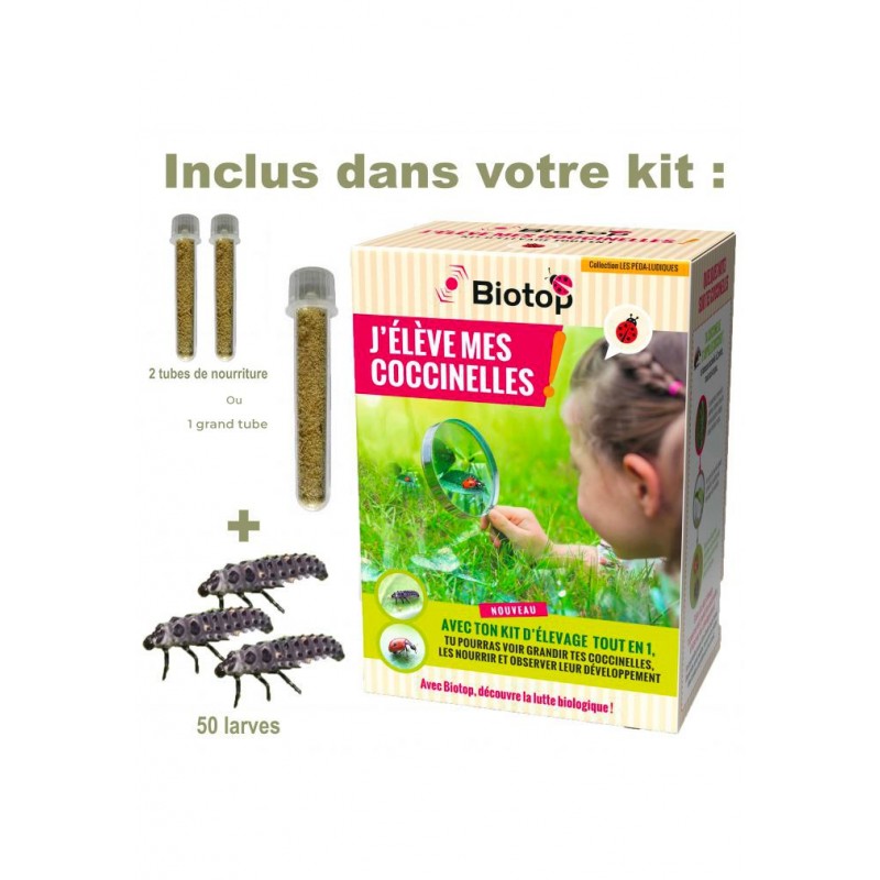 Si vous sélectionnez le Kit pédagogique, vous recevrez dans un premier temps de notre part 1 boîte loupe portative + 1 pince + 1 calendrier de suivi de l'élevage + 1 guide d'élevage.